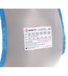 Una robusta cinghia spinata (100% poliestere), orla l'imbracatura e forma, ad ogni estremità, un occhiello con diversi punti di aggancio per assicurare la simmetria durante il sollevamento. La cinghia è continua e cucita su tutto il perimetro dell'imbracatura al fine di garantire maggiore tenacità. Le cuciture vengono realizzate utilizzando un filo in poliestere ad alta resistenza. Una morbida imbottitura fornisce un gradevole supporto sotto le braccia. Portata max. Kg. 250.