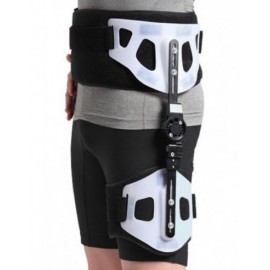 Il tutore è universale e si adatta sia al lato destro che a quello sinistro. Le cinque viti di bloccaggio limitano la flessione dell'anca da 0 a 140 gradi (regolazione di 20 gradi). Inoltre, con la morbida fascia addominale è possibile un'ampia gamma di regolazioni per personalizzare il tutore alla forma del corpo, mentre la cerniera che consente di regolare la flessione/estensione e il grado di abduzione.