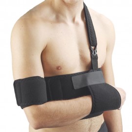Lo speciale materiale in spugna foderato di stoffa assicura il massimo comfort nell'immobilizzare l'adduzione di spalla e braccio. Le fasce di velcro posizionate frontalmente permettono una facile regolazione in tutta autonomia. Taglia unica.