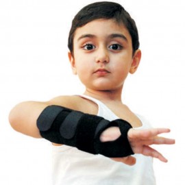 Immobilizzatore polso per bambino, foderato internamente in confortevole tessuto spugnoso, questo tutore è specificamente ideato per i bambini. La stecca in alluminio fornisce stabilizzazione al polso, limitando i movimenti di flessione ed estensione. Regolabile facilmente grazie agli strappi, si adatta ad ogni circonferenza. Altezza 16 cm.