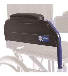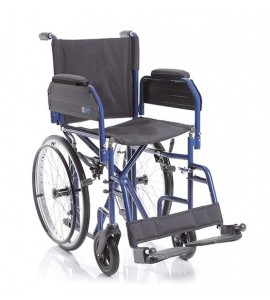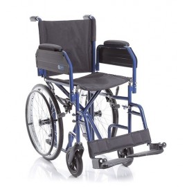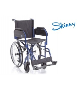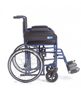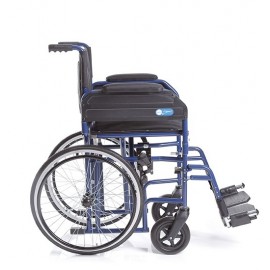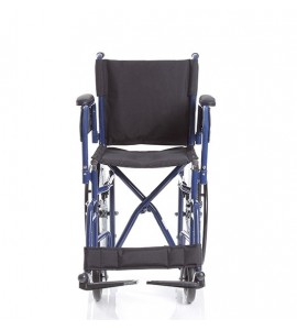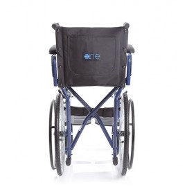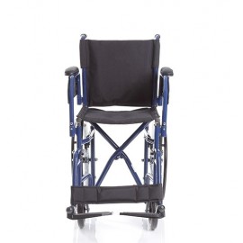 Carrozzina pieghevole a crociera singola, con ruote posteriori da 20'' (Ø 500 mm) e anello corrimano, posizionate sotto il sedile, per ridurre gli ingombri laterali e semplificare l'attraversamento dei passaggi stretti, quali porte di ridotte dimensioni e corridoi. Seduta e schienale in nylon lavabile. Tasca porta documenti sul retro.