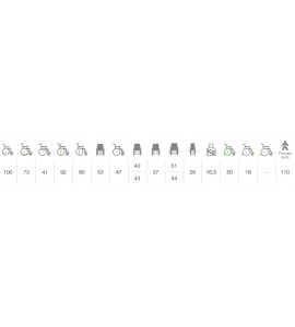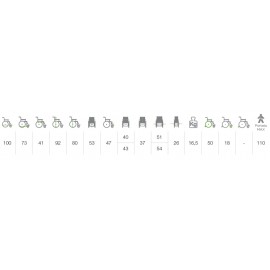 Disponibile nella seduta 40 e 43 cm con un ingombro massimo ruota-ruota di 9,5 cm rispetto alla seduta.
