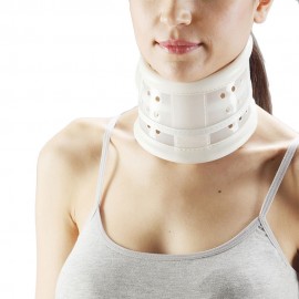 Un collare cervicale senza appoggio mentoniero, progettato anatomicamente in base alla forma del collo, fabbricato in materiale plastico. Altezza massima del collare 7,3 cm. Le diverse taglie sono previste per garantire un allineamento neutro grazie anche alle chiusure a strappo. Il collare stabilizza la zona del collo e ne allevia la pressione.