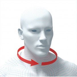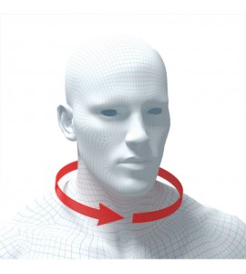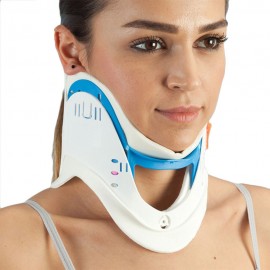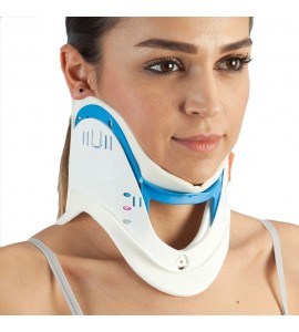 Fabbricato in materiale plastico. Il lato interno è rivestito di materiale morbido espanso. Possibilità di 3 livelli di regolazione dell'altezza con sistema di blocco di sicurezza. Il collare è dotato di un'apertura in corrispondenza della trachea per il controllo del battito e per tracheotomie di emergenza. Il foro sul lato posteriore del collare consente la palpazione della zona cervicale.