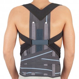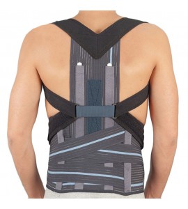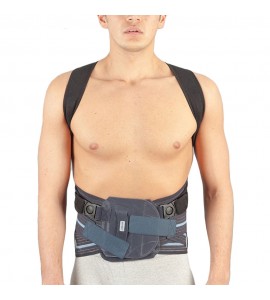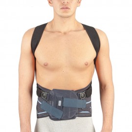 Realizzato in puro cotone di alta qualità , traspirante e antisudorazione è dotato di bretelle che passando sotto alle braccia e chiudendosi sul petto offrono un maggiore supporto extra, nella zona lombare. Le due barre metalliche nella parte posteriore possono essere inclinate in base alla curvatura fisiologica della spina dorsale fornendo maggiore stabilità .Altezza Anteriore 17 Altezza posteriore 26.