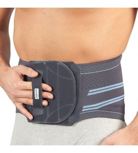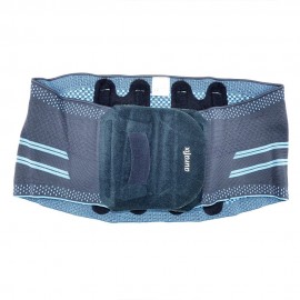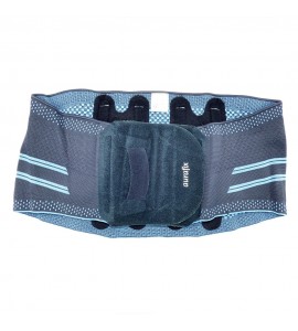 Corsetto in tessuto High-Tech dal design anatomico e anti-sudorazione. È composto da 4 stecche interne in plastica sulla parte posteriore. Le stecche metalliche invece possono essere regolare manualmente per adattarsi alla lordosi lombare. Grazie al sostegno alla regione lombare, allevia il dolore muscolare, migliora il comfort e la sicurezza.