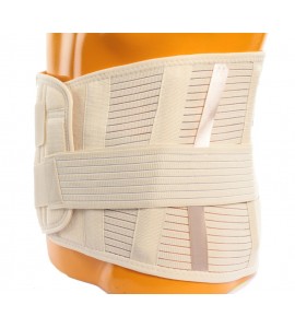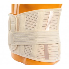 Corsetto criss-cross in tessuto millerighe di alta qualità, traspirante ed antisudorazione. L'altezza massima posteriore è di 26 cm, quella anteriore di 18 cm. Il corsetto è rinforzato da 4 stecche (2 estraibili e 2 fisse), mentre le bande diagonali assicurano un maggior supporto alla zona lombare e le pattine frontali permettono il fissaggio del velcro su una superficie maggiore, per una migliore vestibilità. La pelle viene ulteriormente protetta dalle stecche grazie ad un'imbottitura extra.