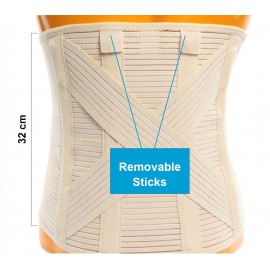 Speciale corsetto criss cross steccato realizzato in tessuto millerighe, traspirante e flessibile. Questo prodotto viene utilizzato attivamente in caso di problemi lombari, muscoli posturali sbilanciati della colonna lombare, problemi ai legamenti, osteocondrosi, spondiliosi e mal di schiena cronico. Rinforzato da 4 stecche (2 estraibili e 2 fisse). Le bande diagonali assicurano un maggior supporto alla zona lombare mentre le pattine frontali permettono di fissare il vecro su una superficie maggiore che significa migliore vestibilità.Un'imbottitura extra protegge ulteriormente la pelle dalle stecche. Altezza posteriore: 32 cm. Altezza anteriore: 21 cm.
