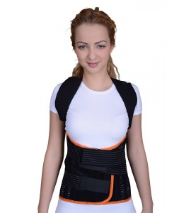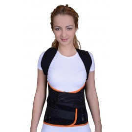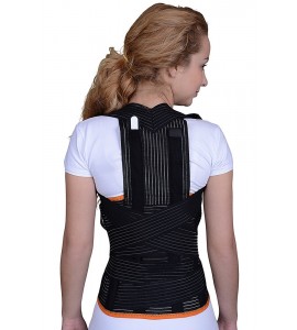 Corsetto realizzato in tessuto millerighe di cotone di alta qualità, traspirante e antisudorazione, dotato di morbide bretelle che passano sotto le braccia prevenendo arrossamenti ed abrasioni. Le due barre metalliche nella parte posteriore sono estraibili e possono essere inclinate in base alla curvatura fisiologica della spina dorsale fornendo maggiore stabilità. L'ampia pattina frontale è completamente velcrosensibile ed offre quindi maggiore vestibilità.