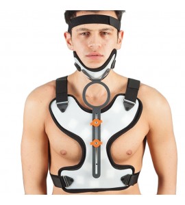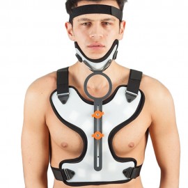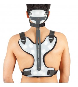Corsetto ortopedico di tipo “Minerva” in Plastazote con foro anteriore per tracheotomizzati. Chiusura a strappo.