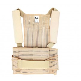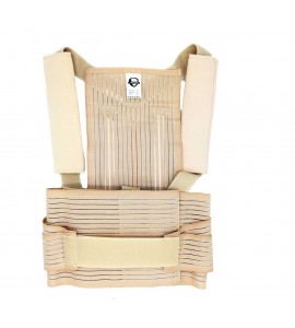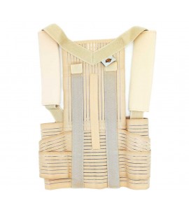 Busto dorso lombare per bambino fabbricato in tessuto di cotone. Il materiale superiore fornisce un'ottima circolazione dell'aria e previene la sudorazione. Gli spallacci continui passano sotto l'ascella e si uniscono sulla parte anteriore per fornire sostegno posturale aggiuntivo sulla zona lombare. I 2 ferretti staccabili in acciaio sulla parte posteriore si possono inclinare secondo la curvatura fisiologica della colonna vertebrale per fornire un'ottima stabilità .