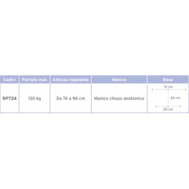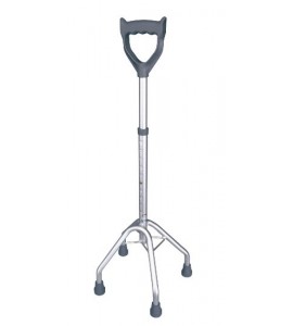 Quadripode a base larga con manico chiuso, impugnatura anatomica. Interamente realizzato in alluminio anodizzato. Puntali antiscivolo in gomma morbida.