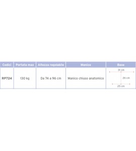 Regolabile in altezza H: 74 ÷ 96 cm