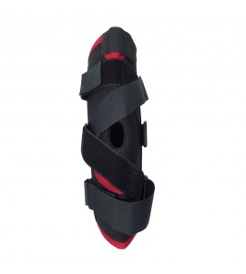 Design anatomico, realizzato in neoprene. Il cuscinetto supporta il perimetro della rotula ed è aperto. Le spirali mediale (interna) e laterale (esterna) permettono la stabilità articolare complessiva del ginocchio. Le cinghie trasversali aderenti secondo il principio dei 3 punti forniscono stabilizzazione a legamento crociato anteriore e rotula.