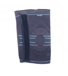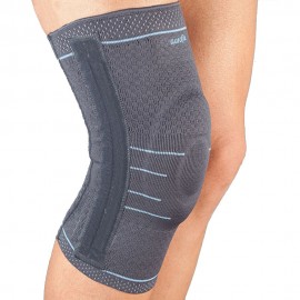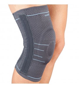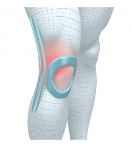 Il tessuto è elastico e anti-sudorazione garantendo massimo comfort durante il trattamento. l'imbottitura in silicone sostiene in modo eccellente il perimetro della rotula. l'alloggio a doppia spirale mediale (interno) e laterale (esterno), garantisce stabilità riducendo il dolore e donando sollievo dal peso caricato sulla zona.