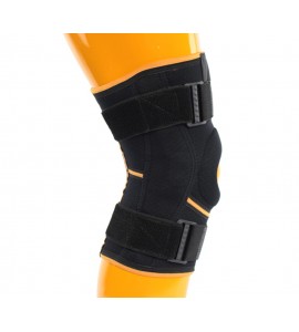 Ginocchiera articolata, con design anatomico, realizzato in doppio strato di neoprene laminato in jersey. Le articolazioni in alluminio su entrambi i lati forniscono il massimo supporto, controllano il movimento e limitano l'iperestensione del ginocchio. I fissaggi a strappo sulla parte superiore e inferiore del polpaccio aumentano la stabilità. Raccomandato durante la riabilitazione e il trattamento dopo interventi chirurgici e lesioni gravi del ginocchio.