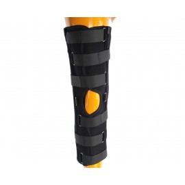 Questo tutore per ginocchio è stato progettato per essere utilizzato in situazioni in cui è richiesta la completa estensione del ginocchio. Fornisce supporto post-operatorio in seguito a operazioni alla rotula e al legamento collaterale. Il prodotto è realizzato in spugna laminata in tessuto dello spessore di 6 mm, laminata internamente in spugna. Fornisce estensione 0 al ginocchio con sostegno su entrambi i lati e sull'asse posteriore del ginocchio. L'altezza è di 35 cm, la larghezza è regolabile per tutte le circonferenze coscia.