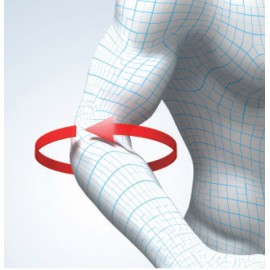 Realizzato con speciali materiali traspiranti ed elastici, la sua particolare struttura dall'effetto micromassaggio, fornisce compressione a tutto il gruppo di muscoli che aderiscono ai condili in entrambi i lati del gomito. La compressione localizzata riduce la tensione dei tendini e quindi il dolore.