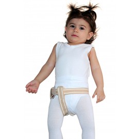 Fascia inguinale contenitiva per bambini progettata per fornire una leggera pressione sull'ernia inguinale. Ha un cuscinetto che può essere utilizzato sul lato desiderato. Prodotto in 60% cotone elastico, le fasce sono elastiche e confortevoli a contatto con la pelle. Può essere usata, infatti, sotto i vestiti e nelle azioni di ogni giorno. Taglia unica.Disponibile per destro e sinistro.
