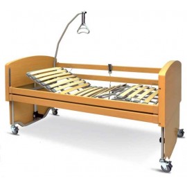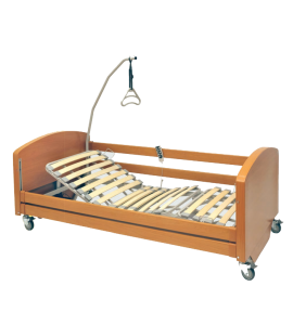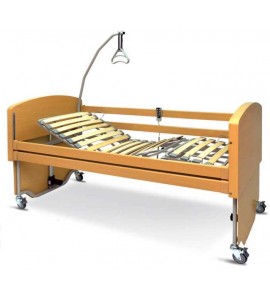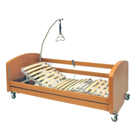 Design di testa e pediera arrotondate per un miglior impatto visivo. Le sponde laterali hanno angoli smussati e sono facilmente regolabili in altezza. Doghe in legno flessibile offrono confort e resistenza. Il sistema di elevazione elettrica a forbici dà la possibilità di adattare il letto alle esigenze dell'utente e di regolarne l'altezza da 30 a 70 cm.