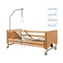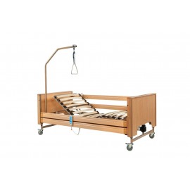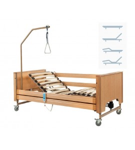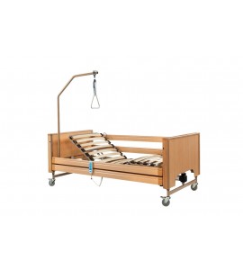 Il Letto elettrico da degenza TULIP rappresenta la soluzione ideale per persone disabili, anziane e ammalate in situazioni di assistenza domiciliare, case di cura e centri di riabilitazione. Il letto è regolabile in altezza grazie ad un sistema di elevazione attivato da due pistoni in modo da rendere più facile e sicura la salita e la discesa del paziente. Non solo, ma grazie alla rete a sezioni regolabili elettricamente, sarà possibile sollevare la parte delle spalle e delle gambe, indipendentemente. Grazie ad un pratico telecomando, la persona allettata potrà trovare autonomamente la posizione più comoda e l'operatore potrà accudire il paziente con molta meno fatica e con la massima sicurezza. Il letto comprende un'asta di sollevamento con maniglia e sponde laterali con angoli smussati, che ridurranno il rischio di cadute accidentali del paziente. In caso non siano necessarie può essere facilmente rimossa.