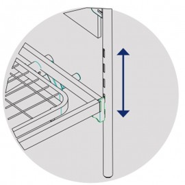 Struttura a rete elettrosaldata ø 4mm a maglie 100x50. Spalliere portanti verniciate ø30x1,5 e pannello in melaminico bordato.