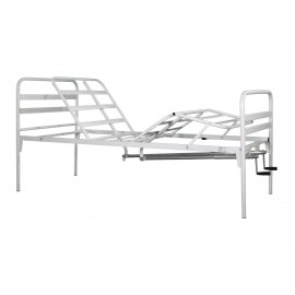 Letto realizzato in profilo di acciaio a sezione rettangolare con spigoli arrotondati mm. 40x20x1,5. Il piano paziente è realizzato con doghe metalliche ovali mm.50×10. Altezza fissa .