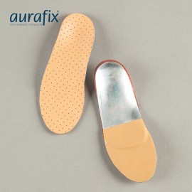 Solette fabbricate in materiale termoplastico speciale con sostegno in acciaio rivestito in pelle che previene il crollo dell'arco plantare. Distribuisce in modo uniforme il peso corporeo e riduce il carico e lo stress sulle articolazioni.