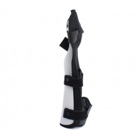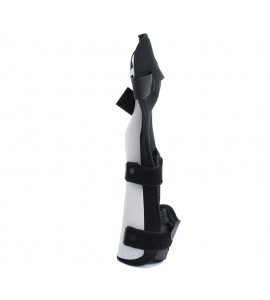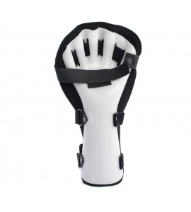 Tutore per mano e polso in materiale termoplastico con rivestimento interno in plastizote. Il prodotto è utilizzato in caso di spasticità della mano, grazie all'incavo per le dita, che impediscono la flessione, e ai materiali in polietilene o polipropilene resistenti alla tensione. Il cinturino imbottito è ancorato ad un rivetto per consentire un posizionamento sicuro.