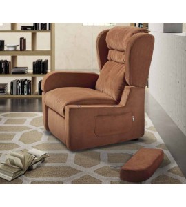 Pratica e comoda poltrona relax pensata per il benessere ed il rilassamento della persona. Design pensato per il massimo comfort, grazie alle varie posizioni di inclinazione si adatta alle più svariate esigenze. I due motori separati consentono di inclinare lo schienale e del poggiapiedi separatamente, consentendo così di ottenere più posizioni, da quella adatta per la lettura o la visione della televisione, a quella di rilassamento e/o digestione. La poltrona è inoltre dotata della funzione alzapersona, grazie ad un motore che consente il sollevamento della persona. Con questo dispositivo di sollevamento, la persona seduta è accompagnata fino ad una posizione quasi eretta, senza rischi di sforzi o affaticamenti, facilitando così l'alzata dalla poltrona anche a chi ha ridotta capacità motoria. Il movimento alzapersona è completamente sicuro, facile e non richiede alcuno sforzo da parte del fruitore. La regolazione delle varie posizioni dello schienale e del poggiapiedi avviene grazie ad un pratico telecomando dotato di pulsanti, facile da usare.