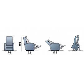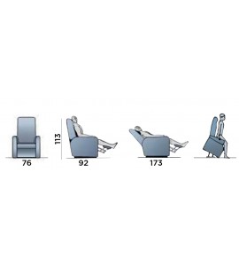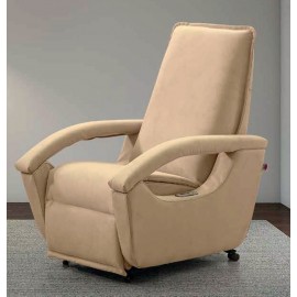 Pratica e comoda poltrona relax pensata per il benessere ed il rilassamento della persona. Design pensato per il massimo comfort, grazie alle varie posizioni di inclinazione si adatta alle più svariate esigenze. I due motori separati consentono di inclinare lo schienale e del poggiapiedi separatamente, consentendo così di ottenere più posizioni, da quella adatta per la lettura o la visione della televisione, a quella di rilassamento e/o digestione. La poltrona è inoltre dotata della funzione alzapersona, grazie ad un motore che consente il sollevamento della persona. Con questo dispositivo di sollevamento, la persona seduta è accompagnata fino ad una posizione quasi eretta, senza rischi di sforzi o affaticamenti, facilitando così l'alzata dalla poltrona anche a chi ha ridotta capacità motoria. Il movimento alzapersona è completamente sicuro, facile e non richiede alcuno sforzo da parte del fruitore. La regolazione delle varie posizioni dello schienale e del poggiapiedi avviene grazie ad un pratico telecomando dotato di pulsanti, facile da usare.