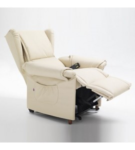 Pratica e comoda poltrona relax pensata per il benessere ed il rilassamento della persona. Design pensato per il massimo comfort, grazie alle varie posizioni di inclinazione si adatta alle più svariate esigenze. I due motori separati consentono di inclinare lo schienale e del poggiapiedi separatamente, consentendo così di ottenere più posizioni, da quella adatta per la lettura o la visione della televisione, a quella di rilassamento e/o digestione. La poltrona è inoltre dotata della funzione alzapersona, grazie ad un motore che consente il sollevamento della persona. Con questo dispositivo di sollevamento, la persona seduta è accompagnata fino ad una posizione quasi eretta, senza rischi di sforzi o affaticamenti, facilitando così l'alzata dalla poltrona anche a chi ha ridotta capacità motoria. Il movimento alzapersona è completamente sicuro, facile e non richiede alcuno sforzo da parte del fruitore. La regolazione delle varie posizioni dello schienale e del poggiapiedi avviene grazie ad un pratico telecomando dotato di pulsanti, facile da usare.