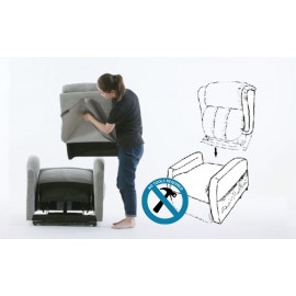La poltrona RENO è disponibile in colore rosso, blu, grigio, beige, marrone scuro e azzurro. La poltrona non necessita di manutenzione tranne per la pulizia periodica dei tessuto che può essere effettuata con aspirapolvere o nei casi di sporco ostinato, lavando i tessuti.