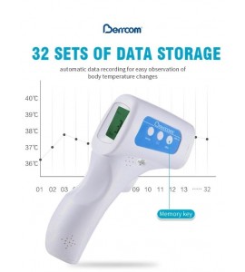 Termometro a infrarossi con rilevamento della temperatura corporea immediato e a distanza per una maggiore sicurezza e salubrità. Tre modalità di funzionamento, per corpo, ambiente e superfici. Memoria per le 32 misurazioni precedenti.
