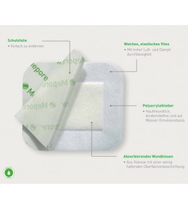 Mepore® è una medicazione autoadesiva, traspirante e assorbente per un'ampia gamma di ferite da scarsamente a moderatamente essudanti - come ferite chirurgiche, tagli e abrasioni. La medicazione aderisce in maniera delicata e sicura alla cute grazie a un adesivo a base acquosa che non irrita la pelle; inoltre, è traspirante per evitare la macerazione della ferita.