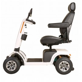 Scooter elettrico stradale a quattro ruote. Il display LCD fornisce tutte le informazioni di cui necessiti. Grazie al confortevole sistema di seduta regolabile e agli pneumatici più larghi dotati di sospensioni, ti assicurerai una guida comoda e scorrevole. Il solido e resistente paraurti frontale, ti garantirà la sicurezza necessaria. È dotato di sistema di illuminazione, frecce, clacson, cicalino di avviso retromarcia inserito. Display dotato di indicatore di tempo, temperatura, velocità e distanza percorsa.