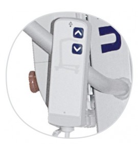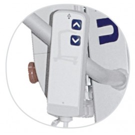 Movimentazione salita e discesa del paziente tramite attuatore lineare elettrico a 24V DC e pulsantiera con cavo. Batteria ricaricabile a mezzo trasformatore di rete. Dotato di pulsante di emergenza. Imbracatura in dotazione standard.