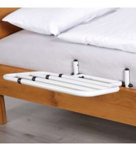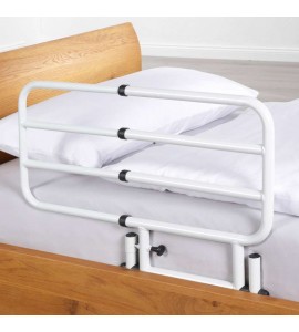 Realizzate in acciaio verniciato. Sponda pieghevole. Il fissaggio al letto avviene tramite chiavini.